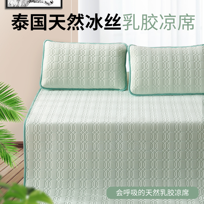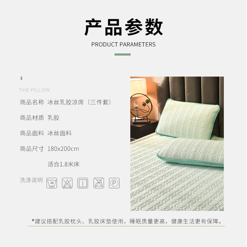 TAIHI泰嗨天然乳胶冰丝凉席三件套薄荷绿(适合1.8米床)【天然乳胶/薄荷绿】