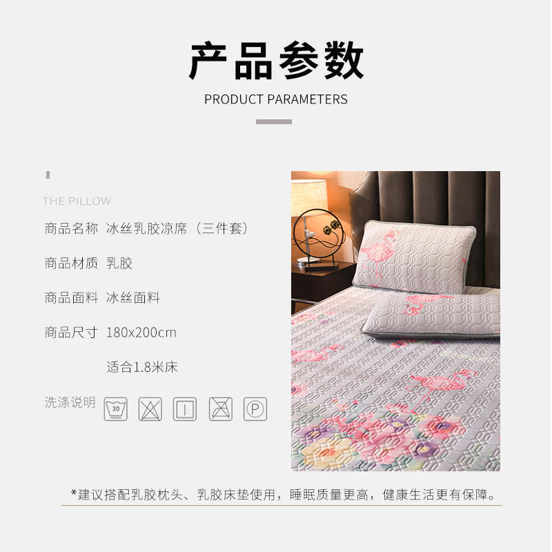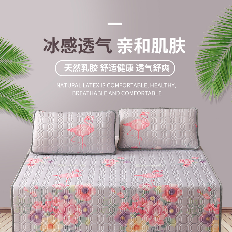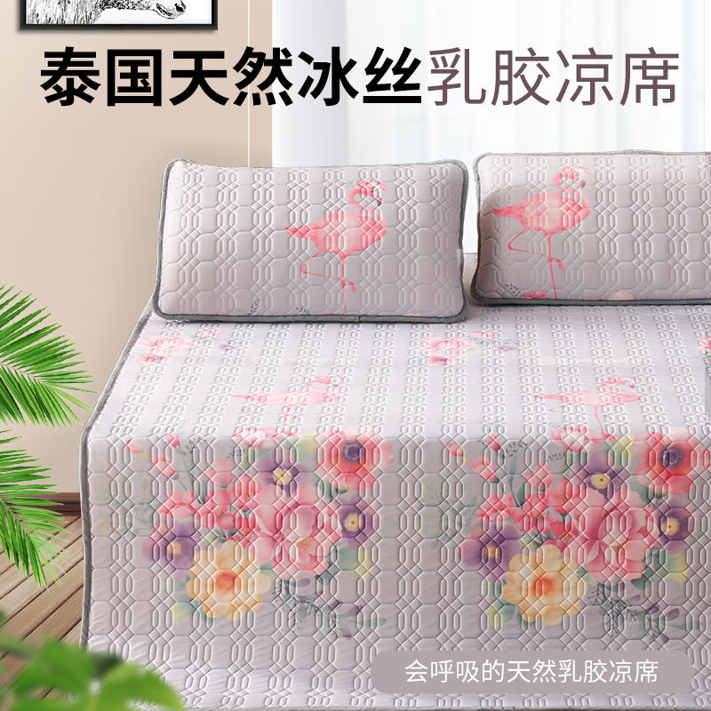 TAIHI泰嗨天然乳胶冰丝凉席三件套火烈鸟银灰(适合1.8米床)【天然乳胶/银灰色】