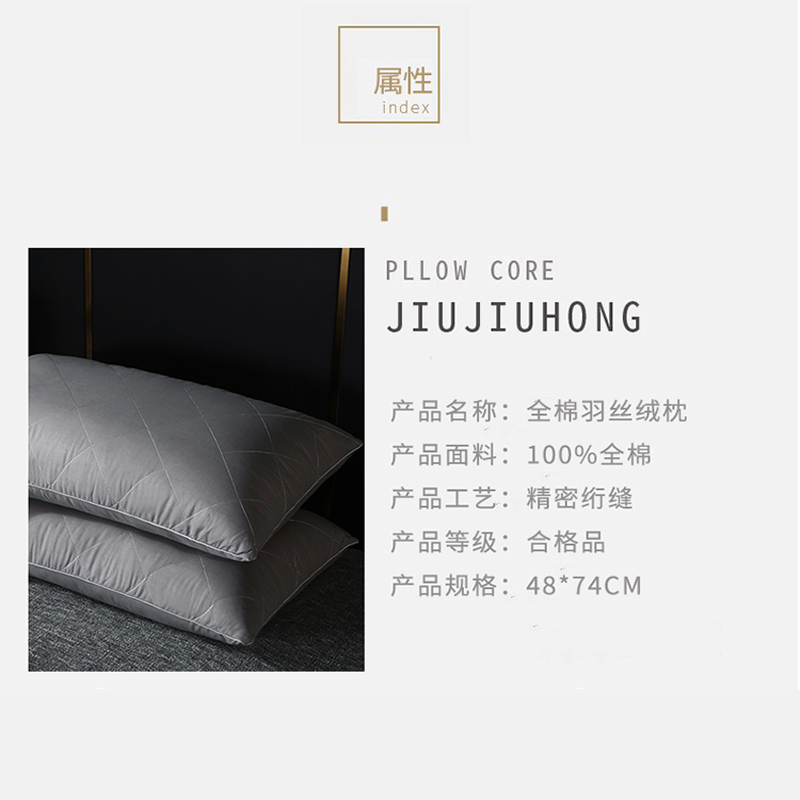 全棉大方格枕芯羽丝绒枕头【面料全棉填充羽丝绒/全棉灰色】