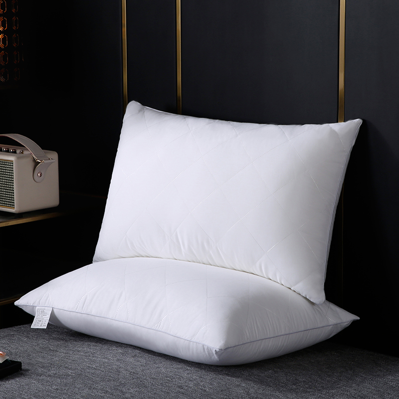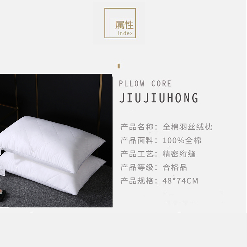 全棉大方格枕芯羽丝绒枕头【面料全棉填充羽丝绒/全棉枕白色】