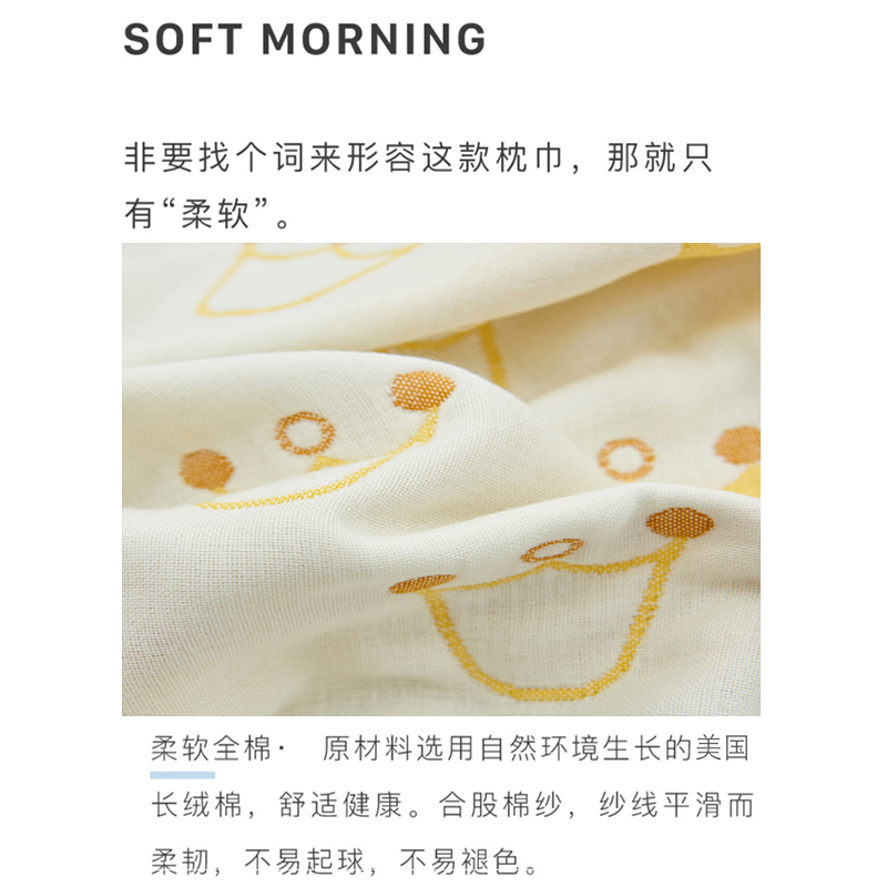 高品质A类全棉六层纱布枕巾一对【长绒棉/枕巾-皇冠金】