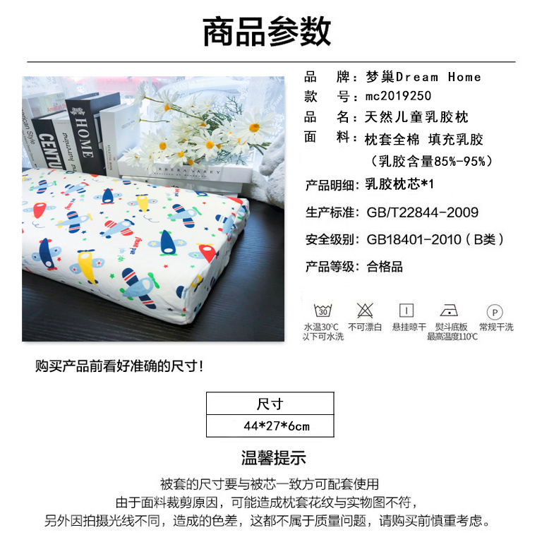 天然儿童乳胶枕(枕头一件)【枕套全棉 填充乳胶(乳胶含量85%-98%)/小飞机】