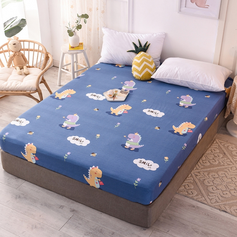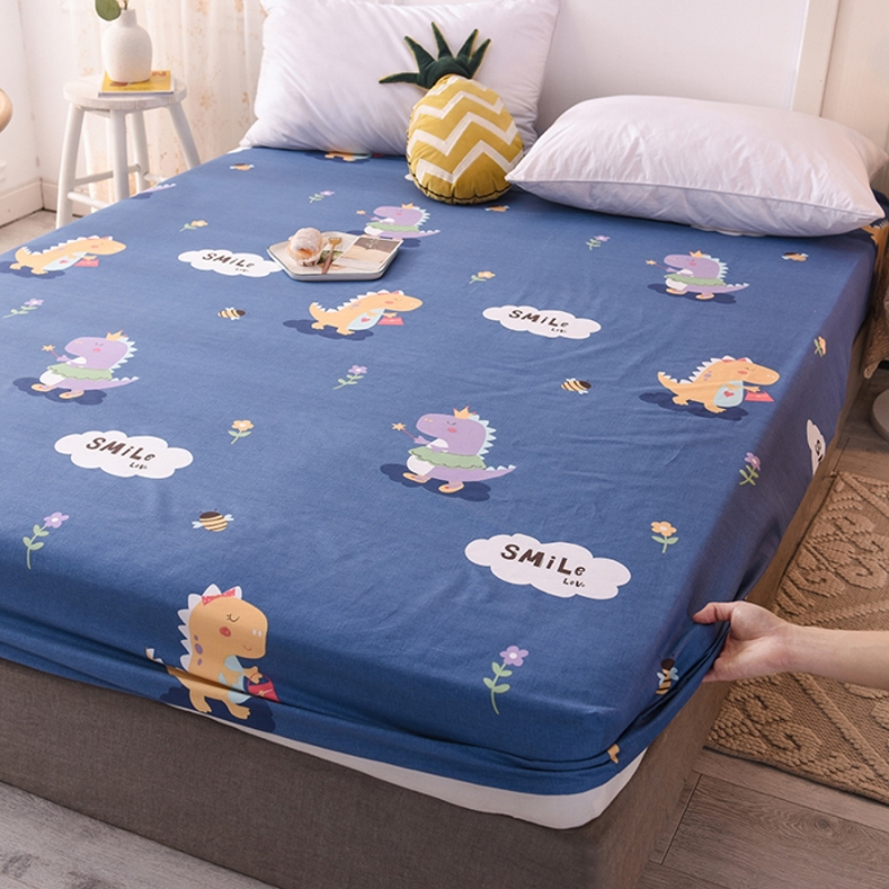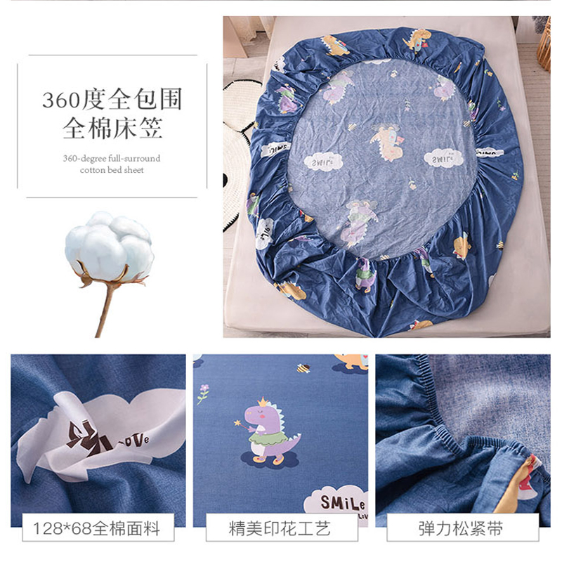 全棉印花小清新床笠【全棉/恐龙宝贝蓝】