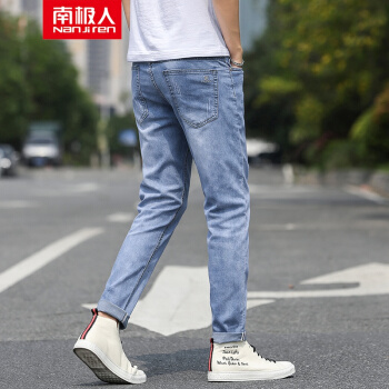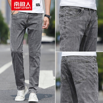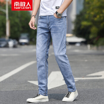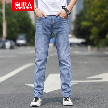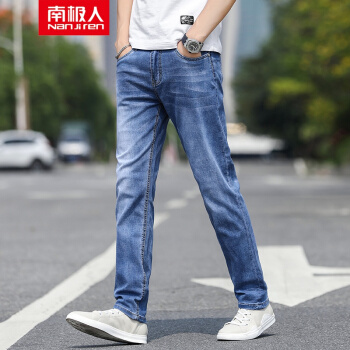 牛仔裤>>南极人牛仔裤男夏季薄款青年时尚透气裤子男商务休闲裤男宽松长裤男士弹力加肥加大码直筒牛仔男裤 浅蓝色 31