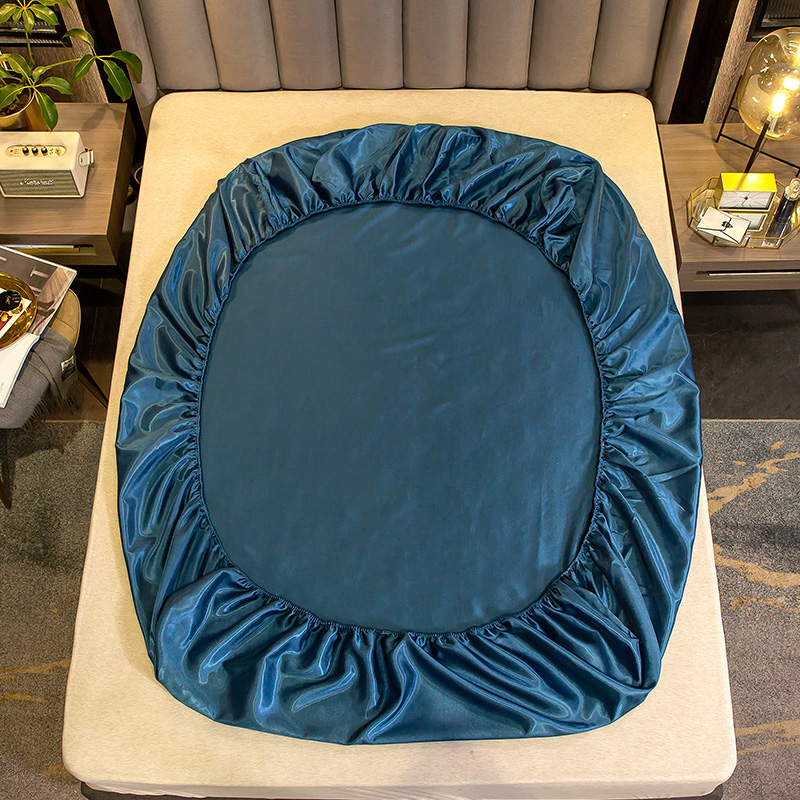 【柔软清爽 凉而不冰】无印床笠款冰丝席三件套【冰丝面料(聚酯纤维)/贵族-蓝】