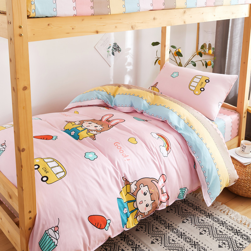【AB版双面可用】学生宿舍高密全棉印花三件套【13070全棉/放飞青春粉】