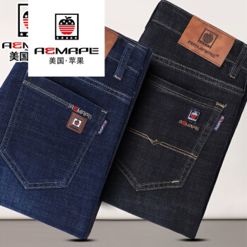 AEMAPE苹果牛仔裤男春夏季宽松直筒弹力男裤子商务休闲夏天薄款中年 25款深蓝+04款蓝黑 【2条春秋款】 28码【腰围2尺1】