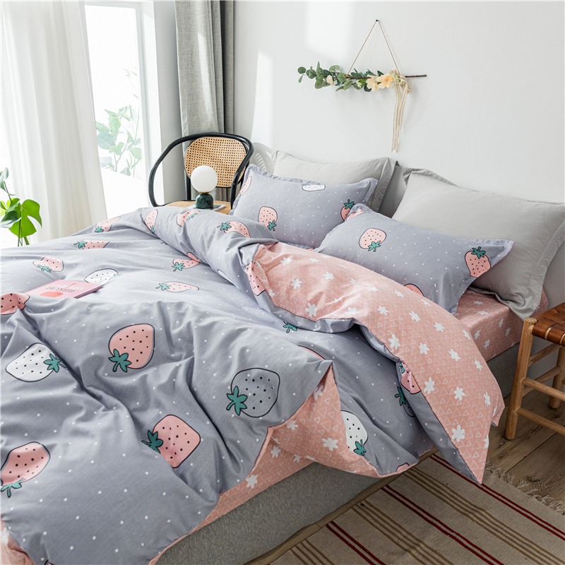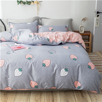 清新时尚ins洛卡棉四件套【洛卡棉(聚酯纤维)/草莓圣代】