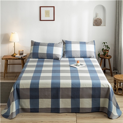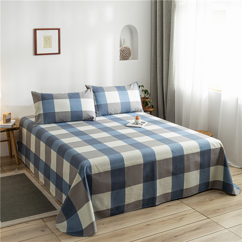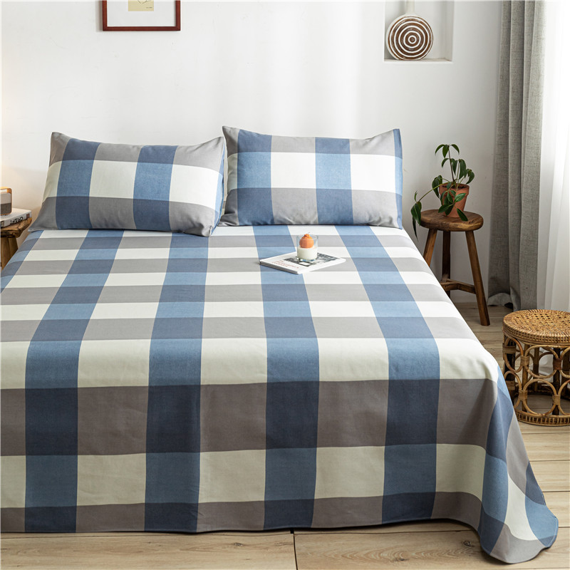 全棉麻空调软凉席老粗布床单三件套【棉/英伦兰格】