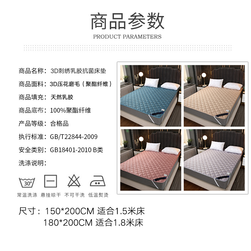 【泰国乳胶】3D刺绣乳胶抗菌床垫【面料:压花面料(聚酯纤维)填充天然乳胶/颜色可选】