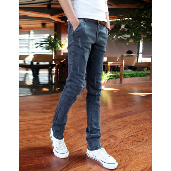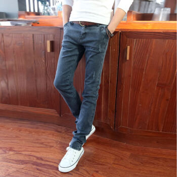 璐奇拉2020春夏新款牛仔裤男韩版时尚弹力修身小脚裤 男士休闲长裤子 蓝灰色 30 2尺3