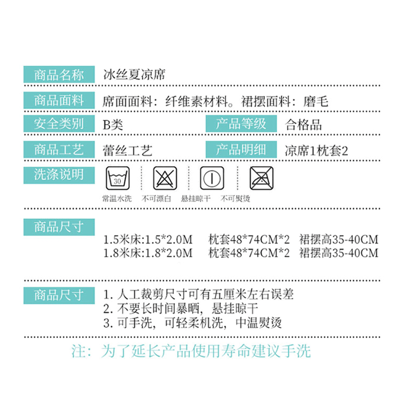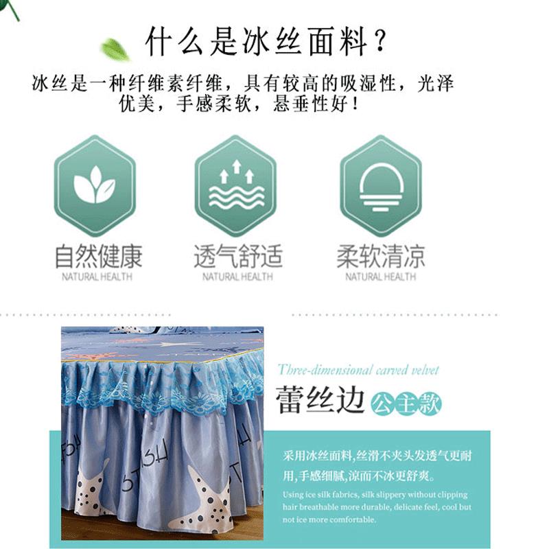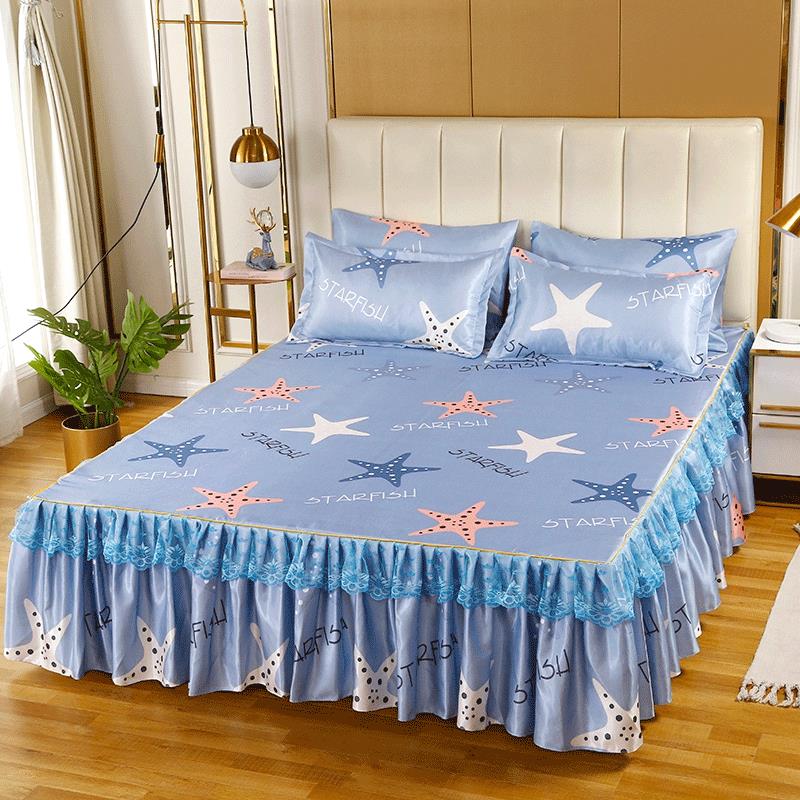 印花蕾丝床裙款冰丝席凉席三件套【冰丝(聚酯纤维)/海星】