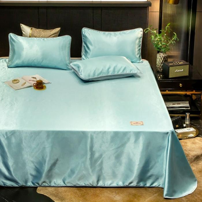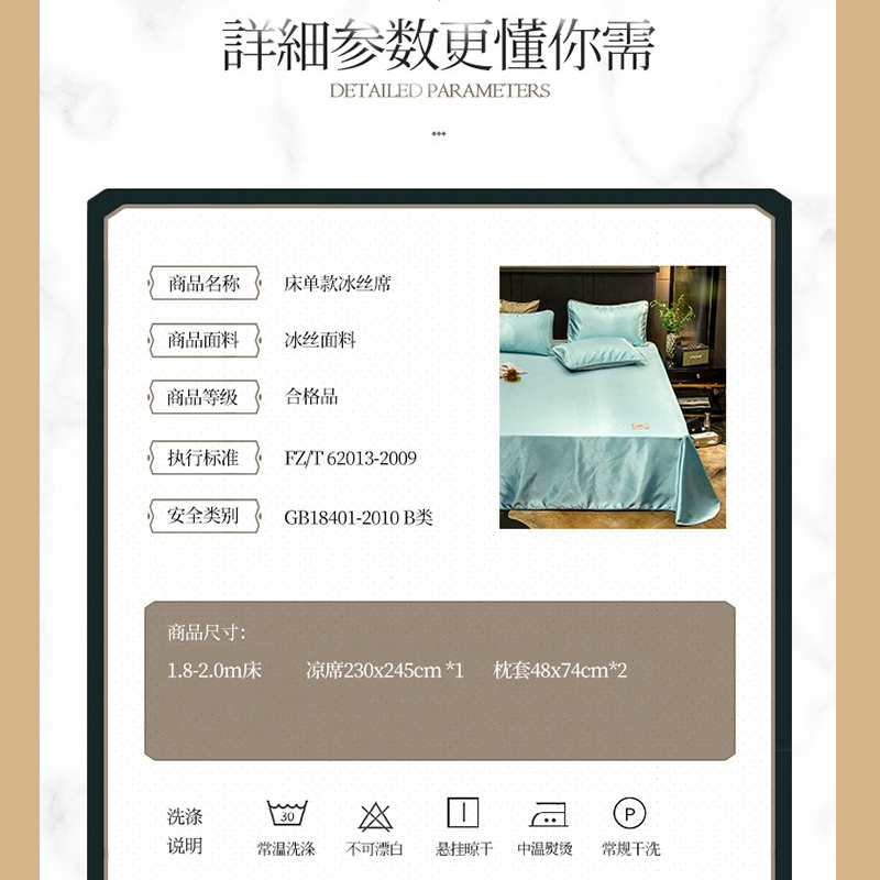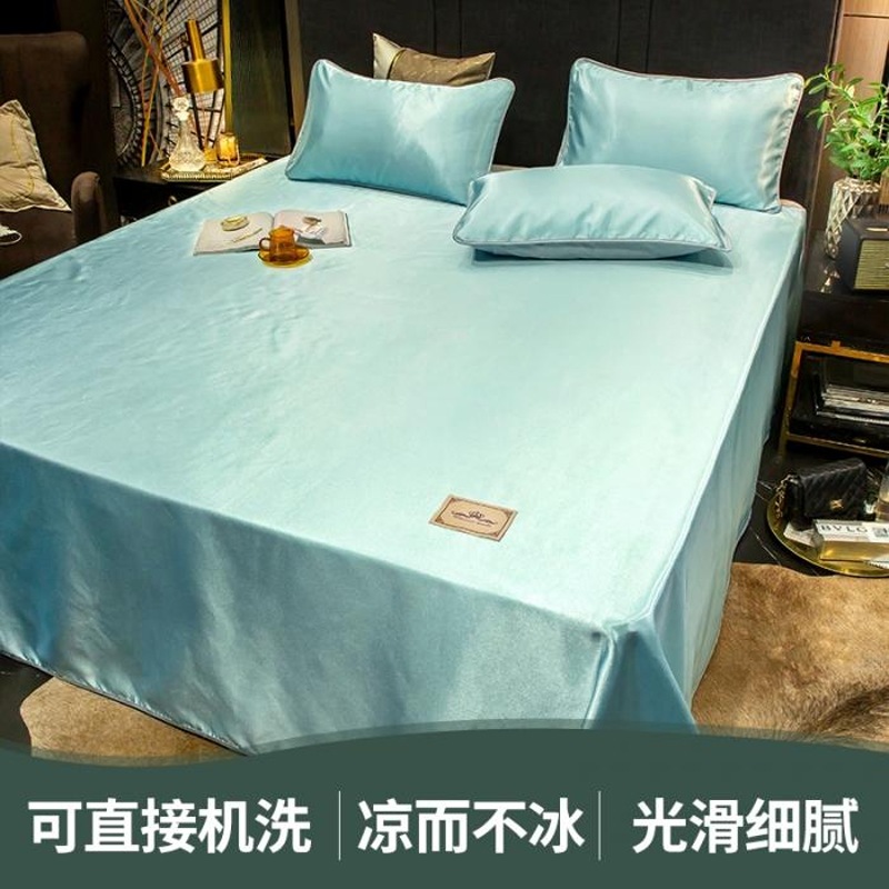 无印纯色床单款冰丝凉席三件套可机洗【冰丝面料(聚酯纤维)/贵族-水绿】