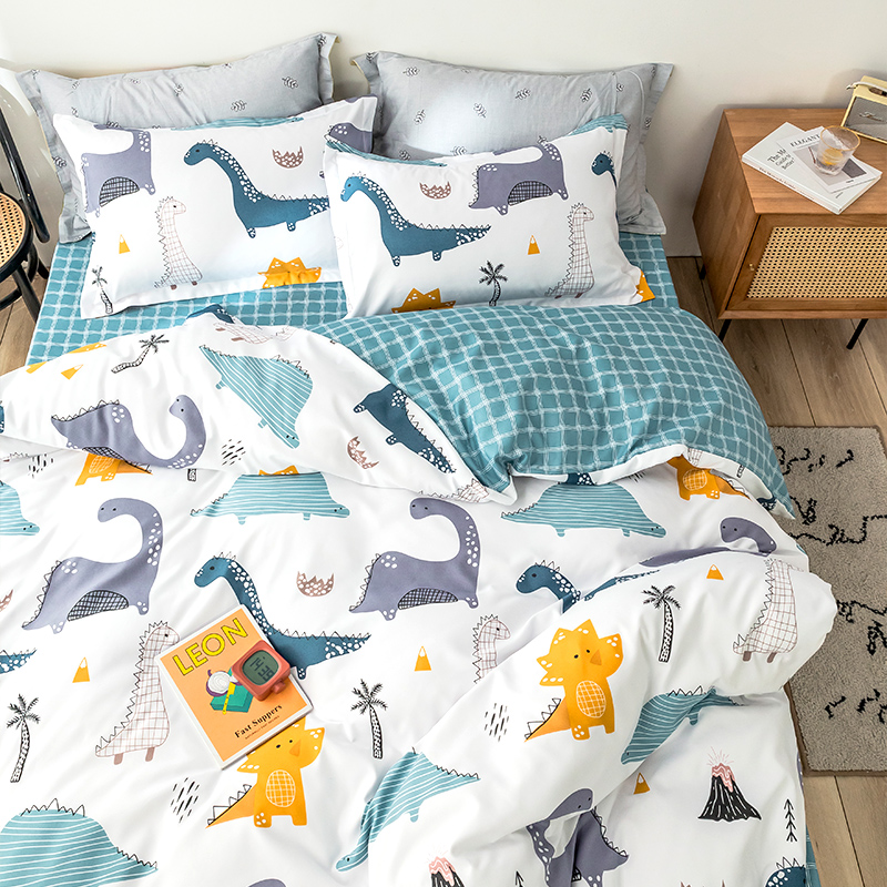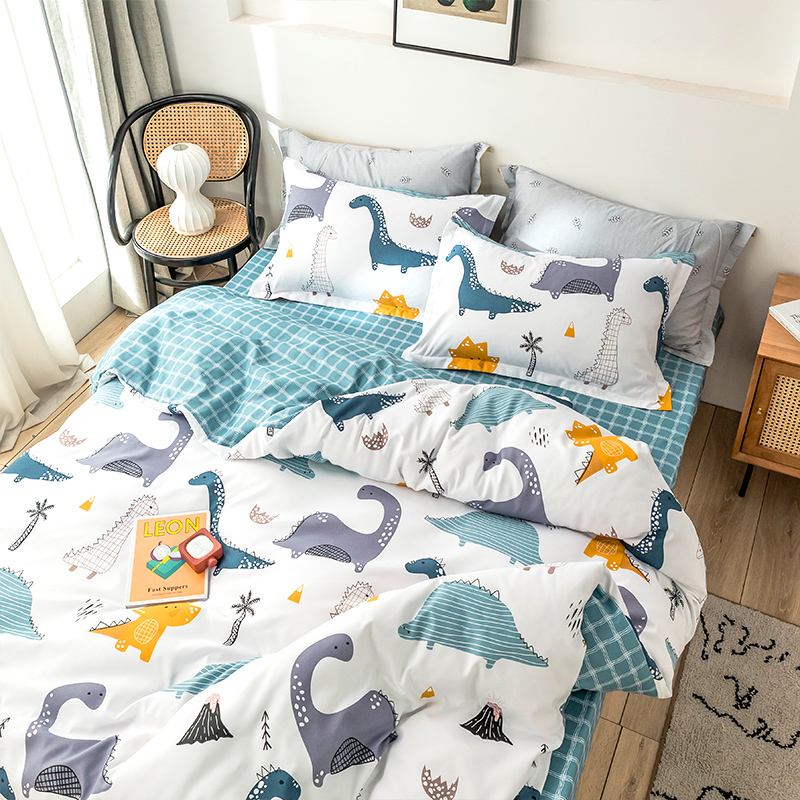 双面加厚磨毛植物羊绒四件套【植物羊绒/百变恐龙】