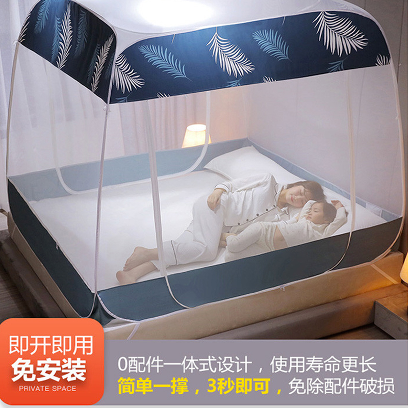 大顶部印花款免安装蚊帐【面料聚酯纤维支架包塑钢丝/蓝叶】