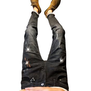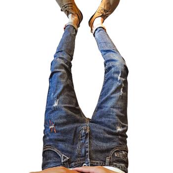 JAZKY破洞牛仔裤男修身小脚弹力直筒韩版潮流2020乞丐裤子春夏季九分裤 CC-175-NZK浅蓝色 34 |