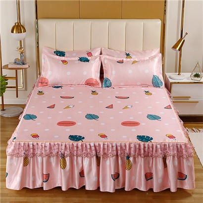 印花蕾丝床裙款冰丝席凉席三件套【冰丝(聚酯纤维)/甜蜜夏日】