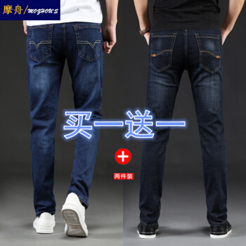 2条装】牛仔裤男 薄款夏季男士长裤商务弹力韩版修身青年直筒宽松大码牛仔裤长裤子 【009蓝色+021黑色】2条装 32