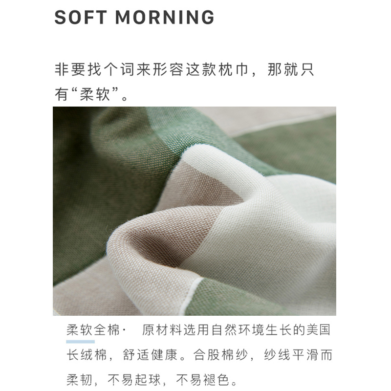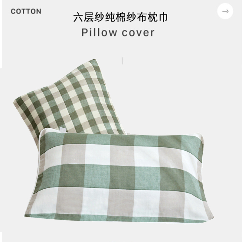 高品质A类全棉六层纱布枕巾一对【A类全棉/枕巾-日式大格绿】
