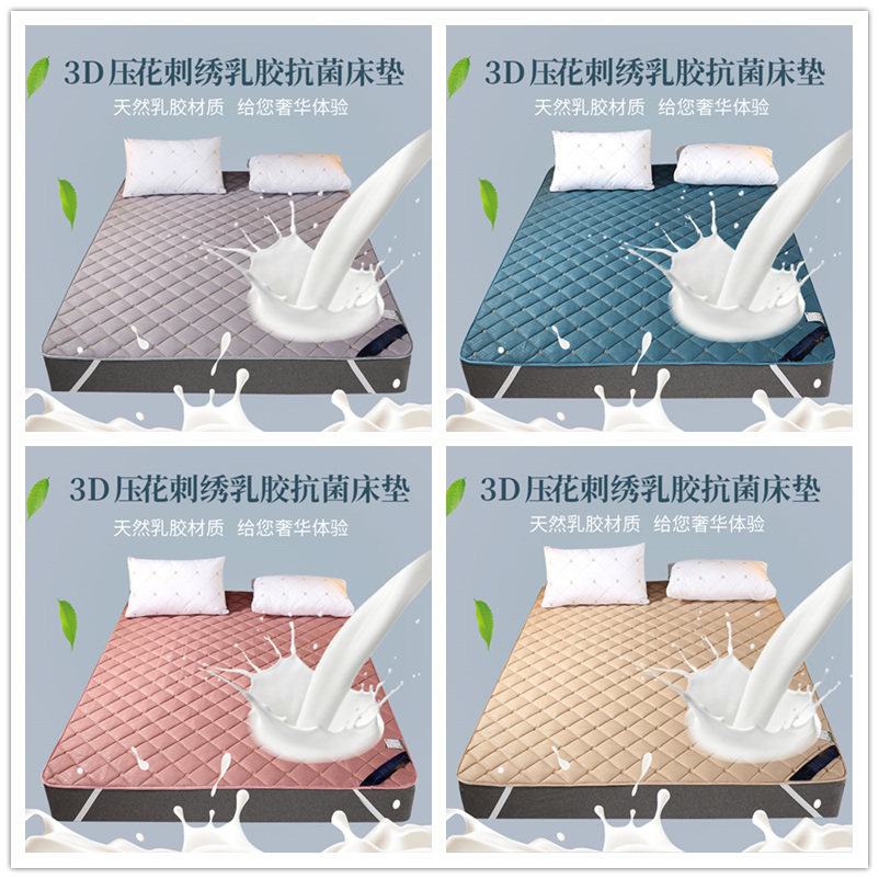 床上套件>>【泰国乳胶】3D刺绣乳胶抗菌床垫【面料:压花面料(聚酯纤维)填充天然乳胶/颜色可选】