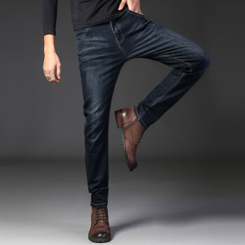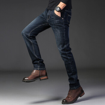 畅影 牛仔裤男夏季新款男士大码修身小脚直筒裤休闲九分裤弹力薄款透气百搭青少年潮流时尚裤子男装 蓝黑色 40