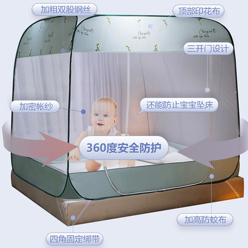大顶部印花款免安装蚊帐【面料聚酯纤维支架包塑钢丝/小雏菊水绿】