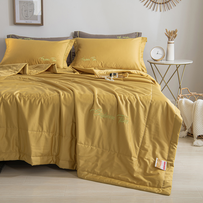 纯色刺绣水洗冰丝大豆纤维夏被【水洗冰丝(聚酯纤维)填充大豆纤维/麦穗黄】