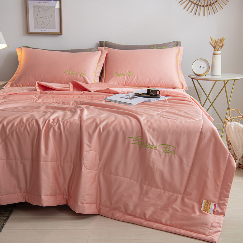 纯色刺绣水洗冰丝大豆纤维夏被【水洗冰丝(聚酯纤维)填充大豆纤维/泫雅玉】
