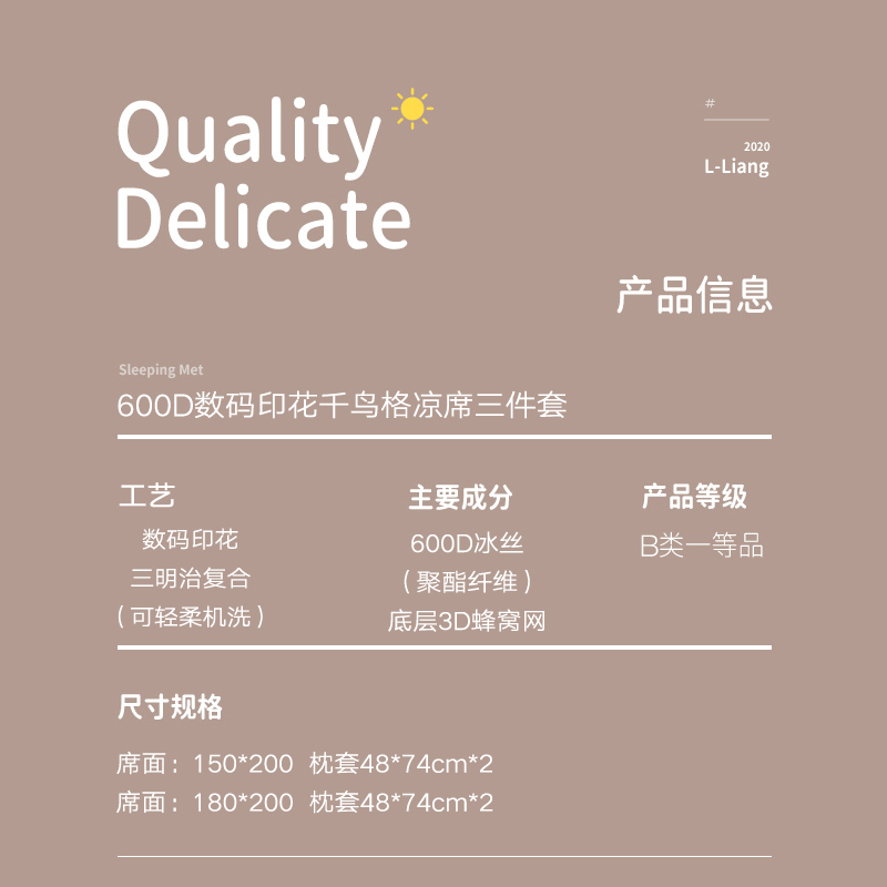 【清新透气加厚三明治】600D数码印花千鸟格【600D冰丝(聚酯纤维)/千鸟格粉】
