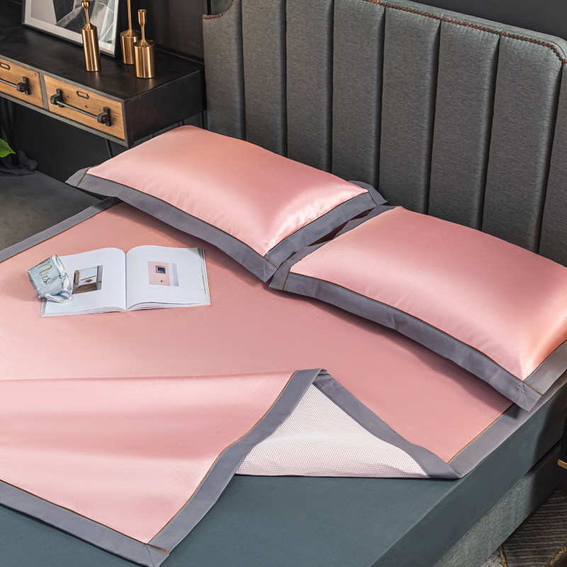 轻奢600D冰丝加厚三明治凉席三件套【聚酯纤维/三明治冰丝粉玉】