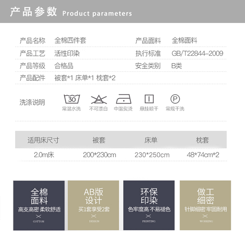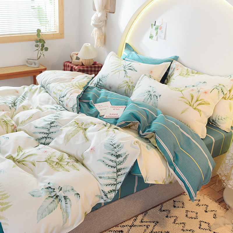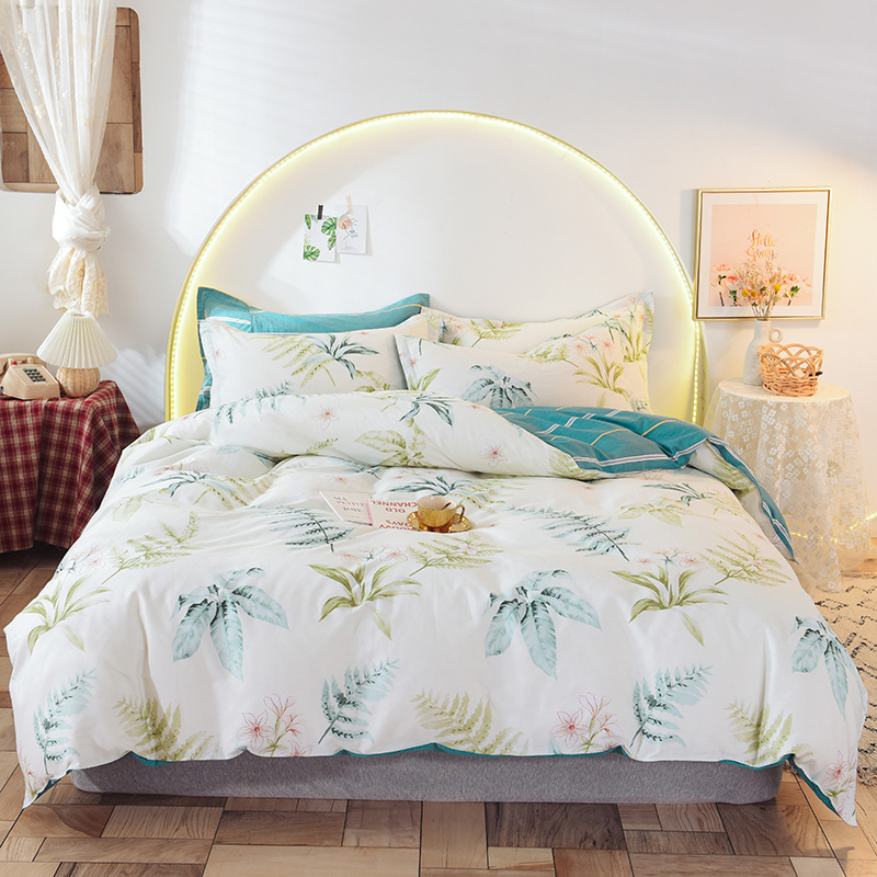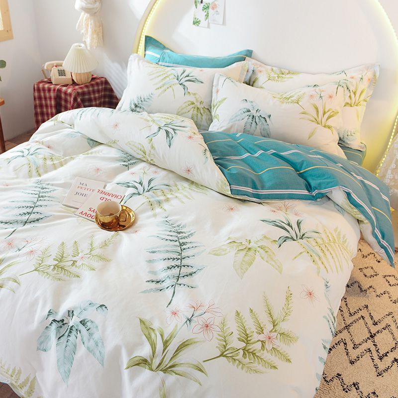 ins清新风AB版简约全棉四件套【全棉/花叶情梦】