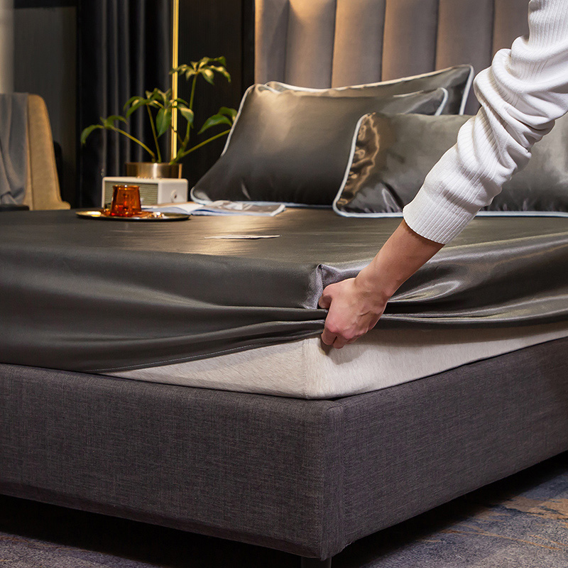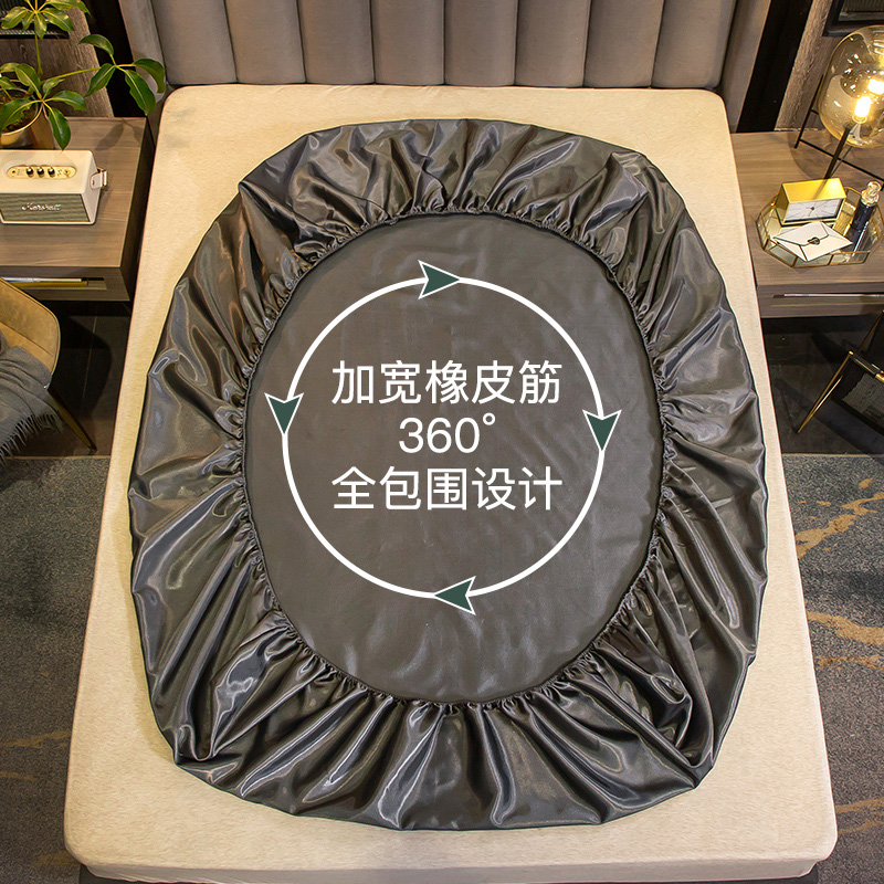 【柔软清爽 凉而不冰】无印床笠款冰丝席三件套【冰丝面料(聚酯纤维)/贵族-深灰】