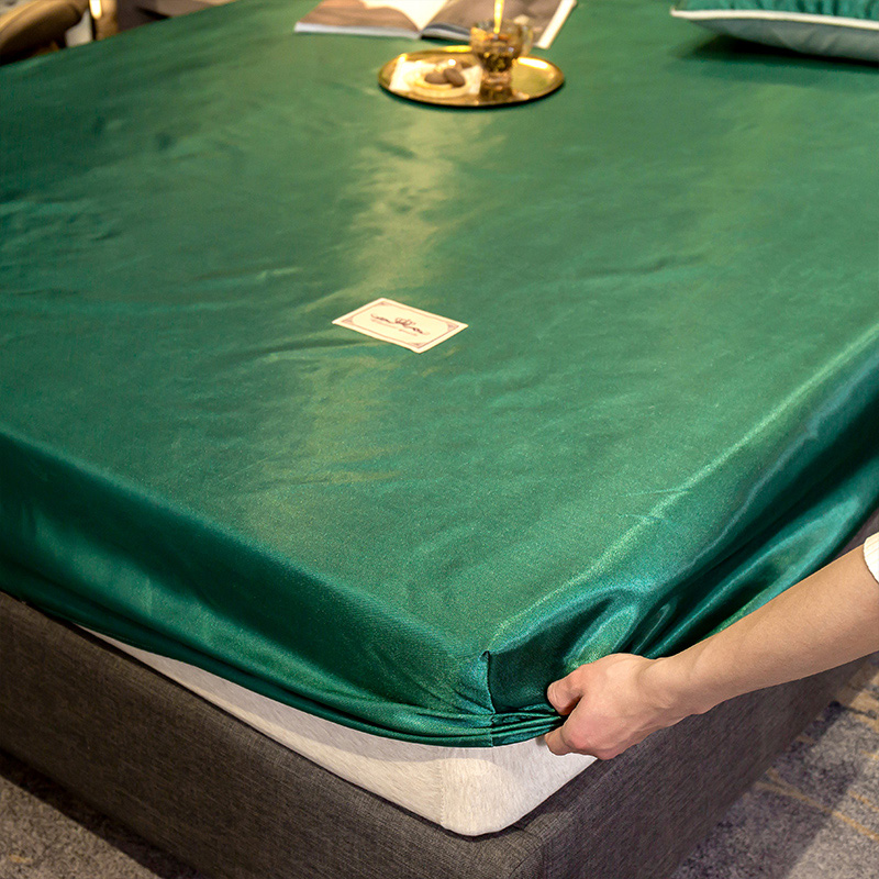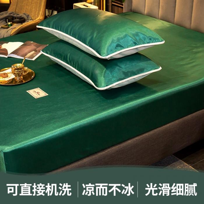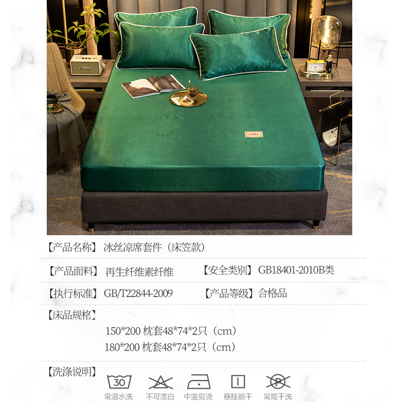 【柔软清爽 凉而不冰】无印床笠款冰丝席三件套【冰丝面料(聚酯纤维)/贵族-绿】