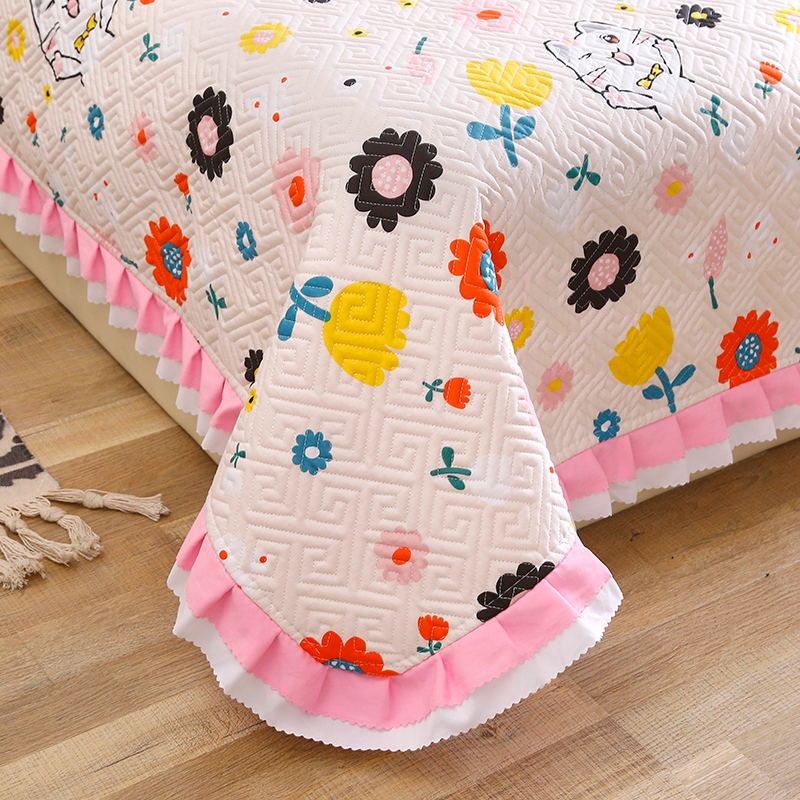 【三层复合】全棉夹棉绗缝床盖三件套【全棉/小花猫】