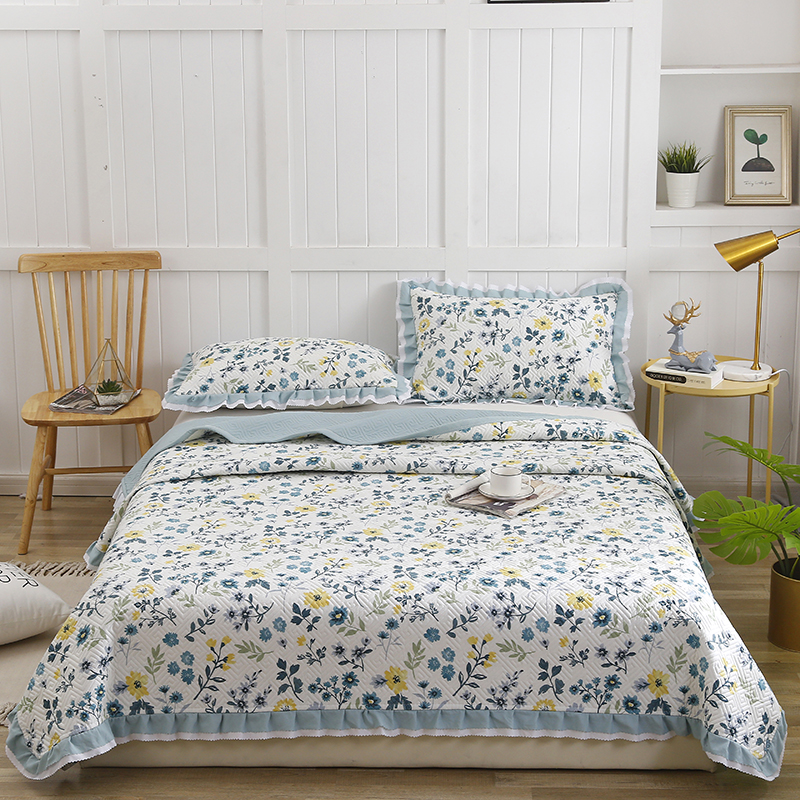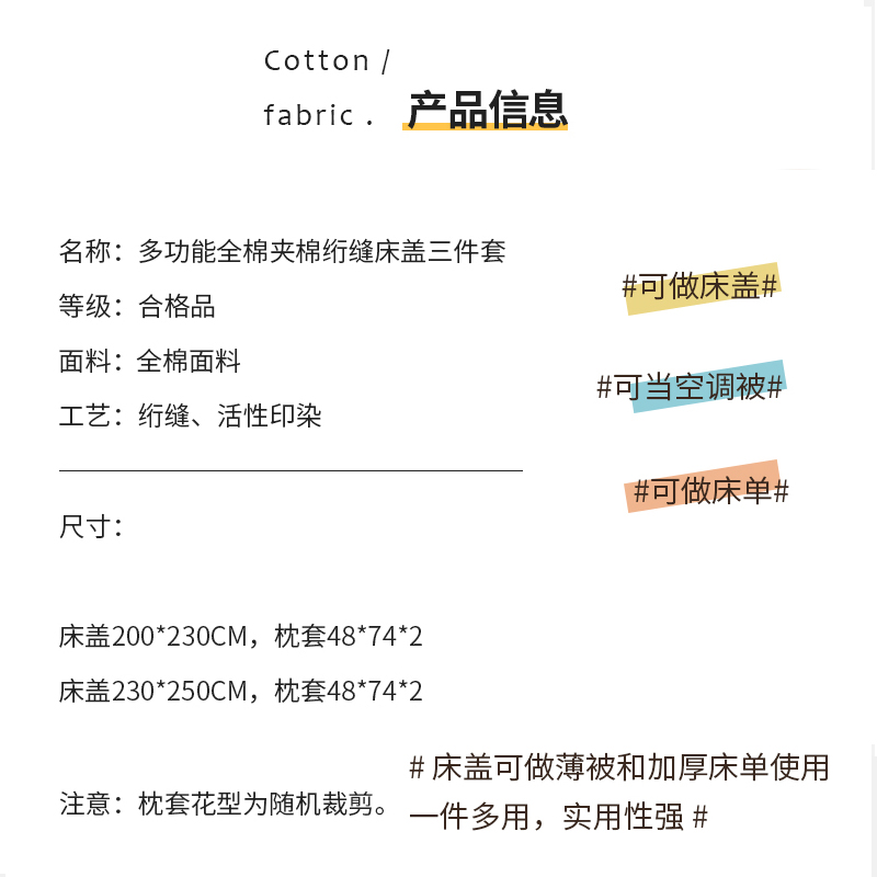 【三层复合】全棉夹棉绗缝床盖三件套【全棉/伊人】
