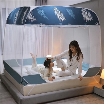 大顶部印花款免安装蚊帐【面料聚酯纤维支架包塑钢丝/蓝叶】
