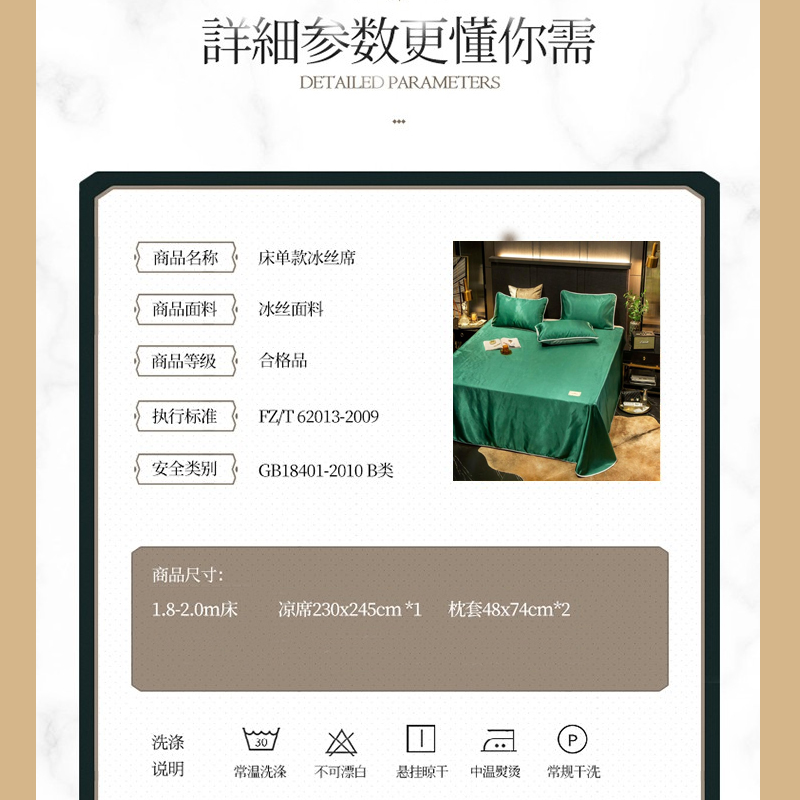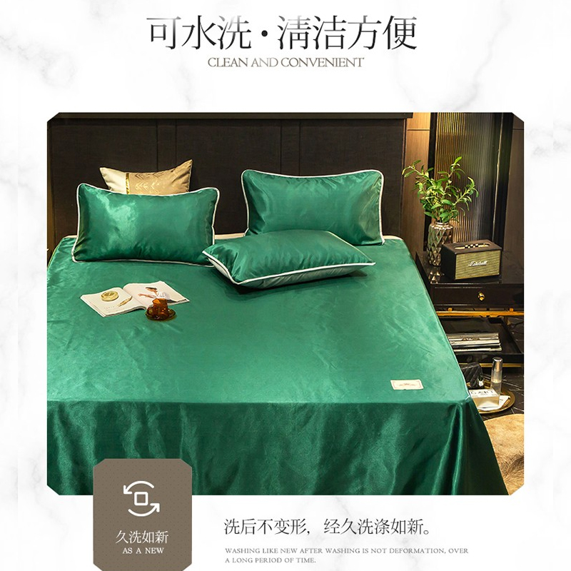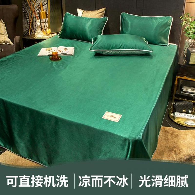 无印纯色床单款冰丝凉席三件套可机洗【冰丝面料(聚酯纤维)/贵族-绿】