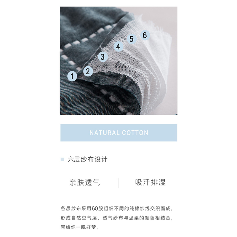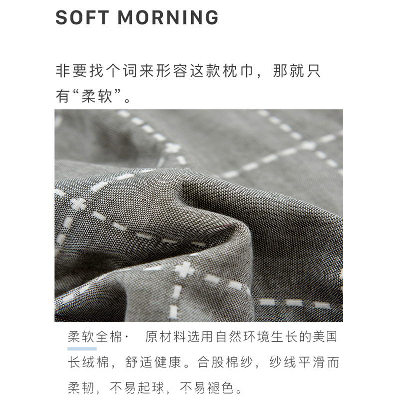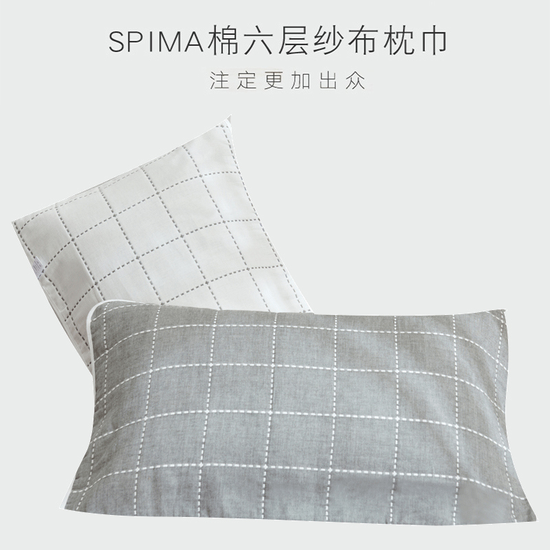 高品质A类全棉六层纱布枕巾一对【A类全棉/枕巾-时尚虚线灰】