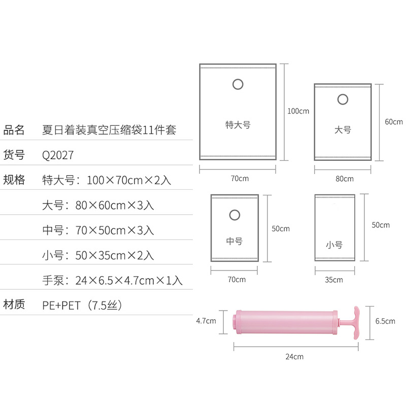 夏日着装真空压缩袋11件套【PE PET(7.5丝)/图片色】
