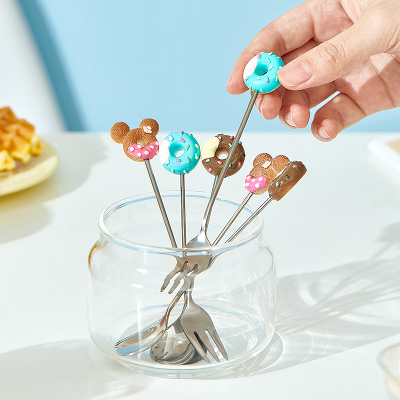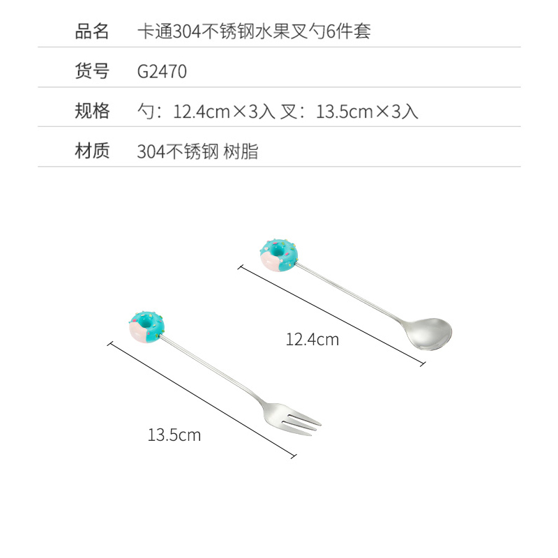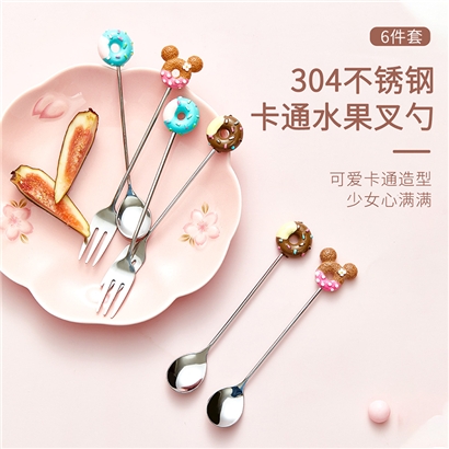 卡通304不锈钢水果叉勺6件套【304不锈钢 树脂/图片色】