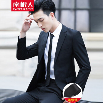 西服>>【正常发货】南极人西服套装男士外套青年韩版修身新郎结婚商务婚礼休闲职业装正装小西装男 二扣黑色西服+西裤.. XL