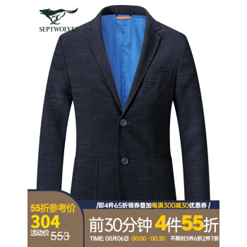 西服>>七匹狼西装男2020秋季新品西服男外套男单西男商务休闲小西装衣服男 (102深蓝色) 175/92A/XL