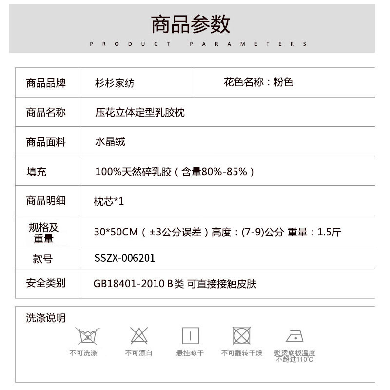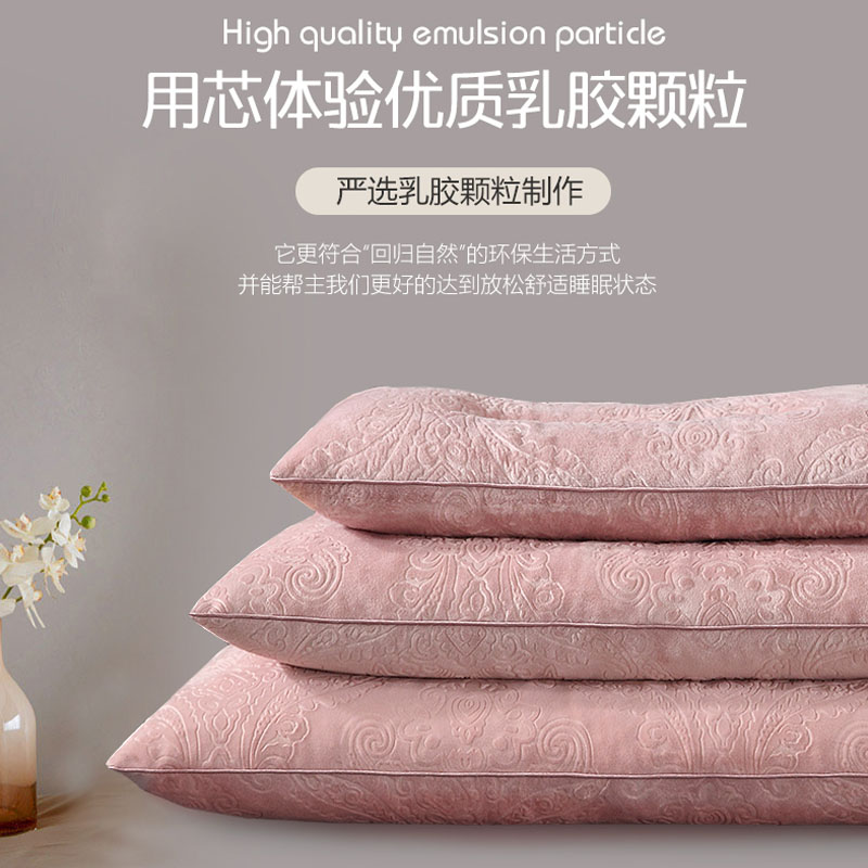 压花立体定型乳胶枕【面料:水晶绒填充:100%天然碎乳胶乳胶含量:80-85%/粉色】