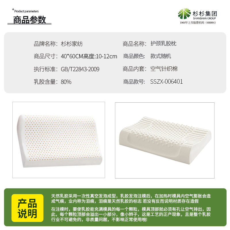 护颈乳胶枕【面料:聚酯纤维填充:80%天然乳胶/随机】