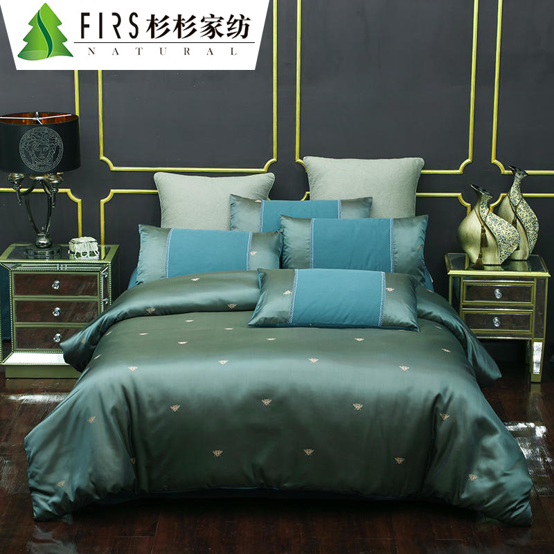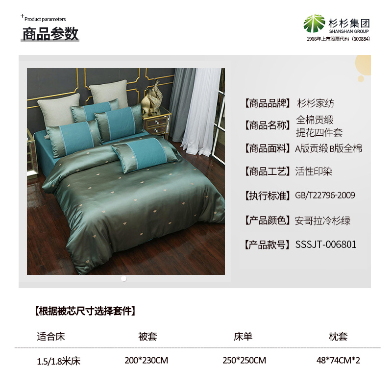 全棉贡缎提花四件套【全棉/安哥拉冷杉绿】
