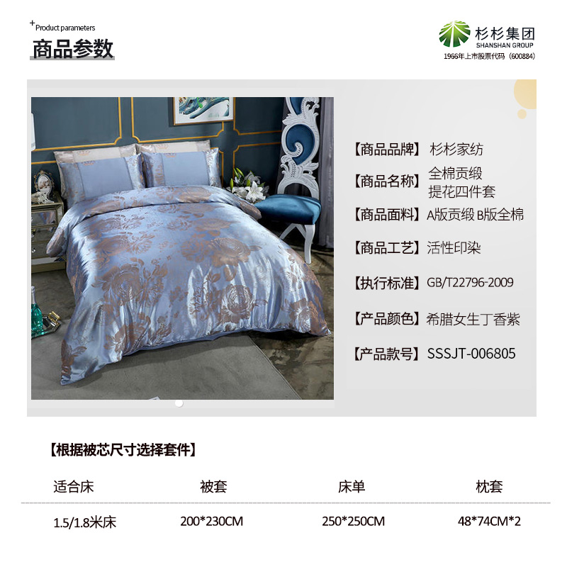 全棉贡缎提花四件套【全棉/希腊女生丁香紫】