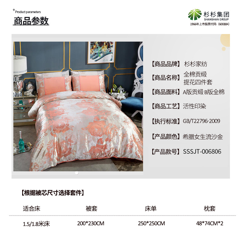 全棉贡缎提花四件套【全棉/希腊女生流沙金】