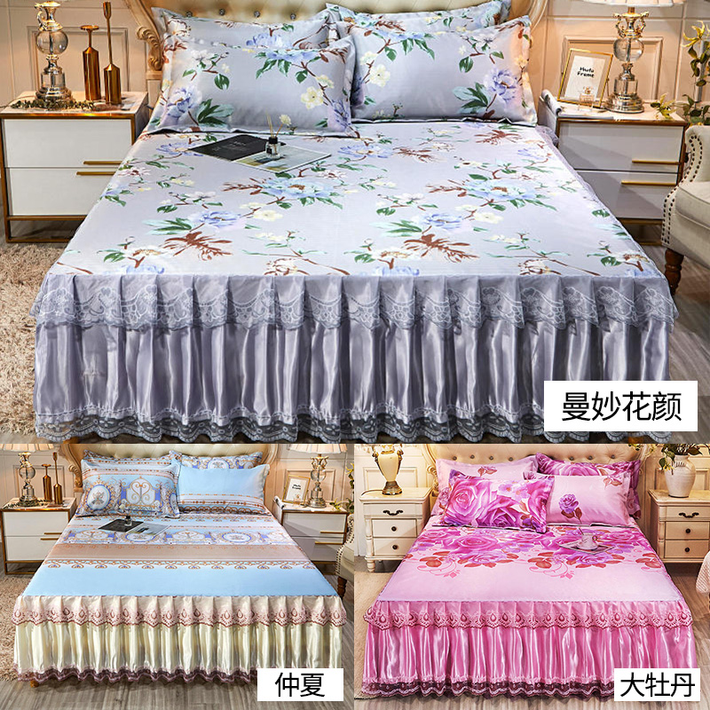 水洗提花冰丝席床裙三件套【聚酯纤维/颜色自选】