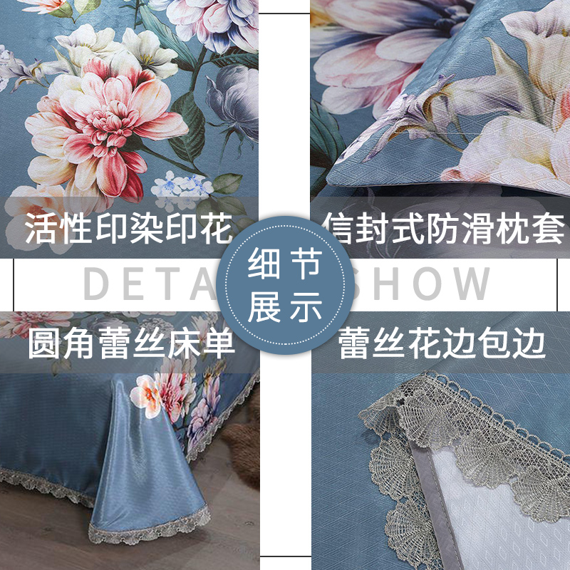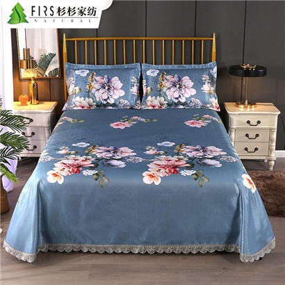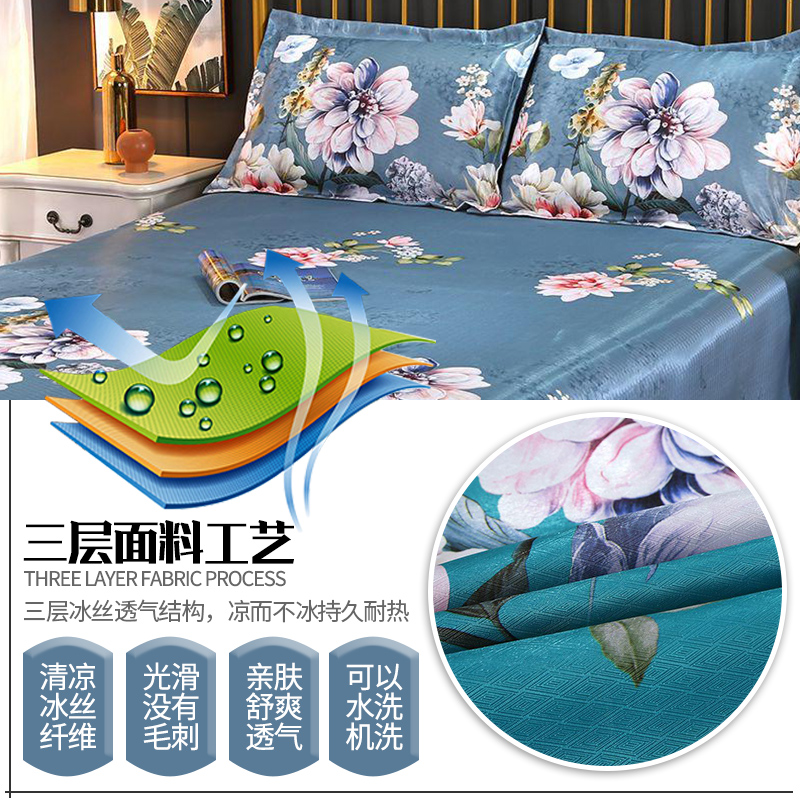 蕾丝花边印花冰丝凉席三件套【聚酯纤维/花间集-灰】