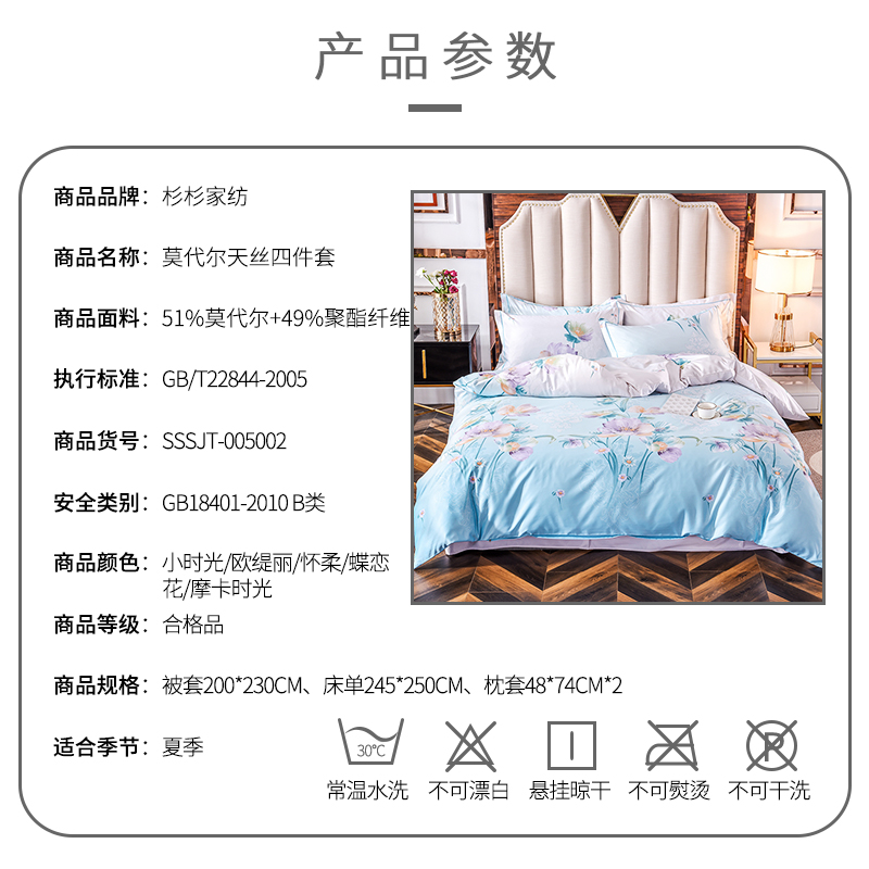 莫代尔天丝四件套【51%莫代尔+49%聚酯纤维/被套200*230床单245*250枕套48*74*2】